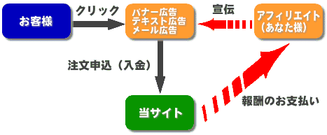 アフィリエイトとは「提携する」といった意味で、ホームページやメールマガジンを運営されている方が広告を掲載し、そこから売上が発生した場合に報酬が支払われるシステムを アフィリエイトプログラムやリンクスタッフといいます。
